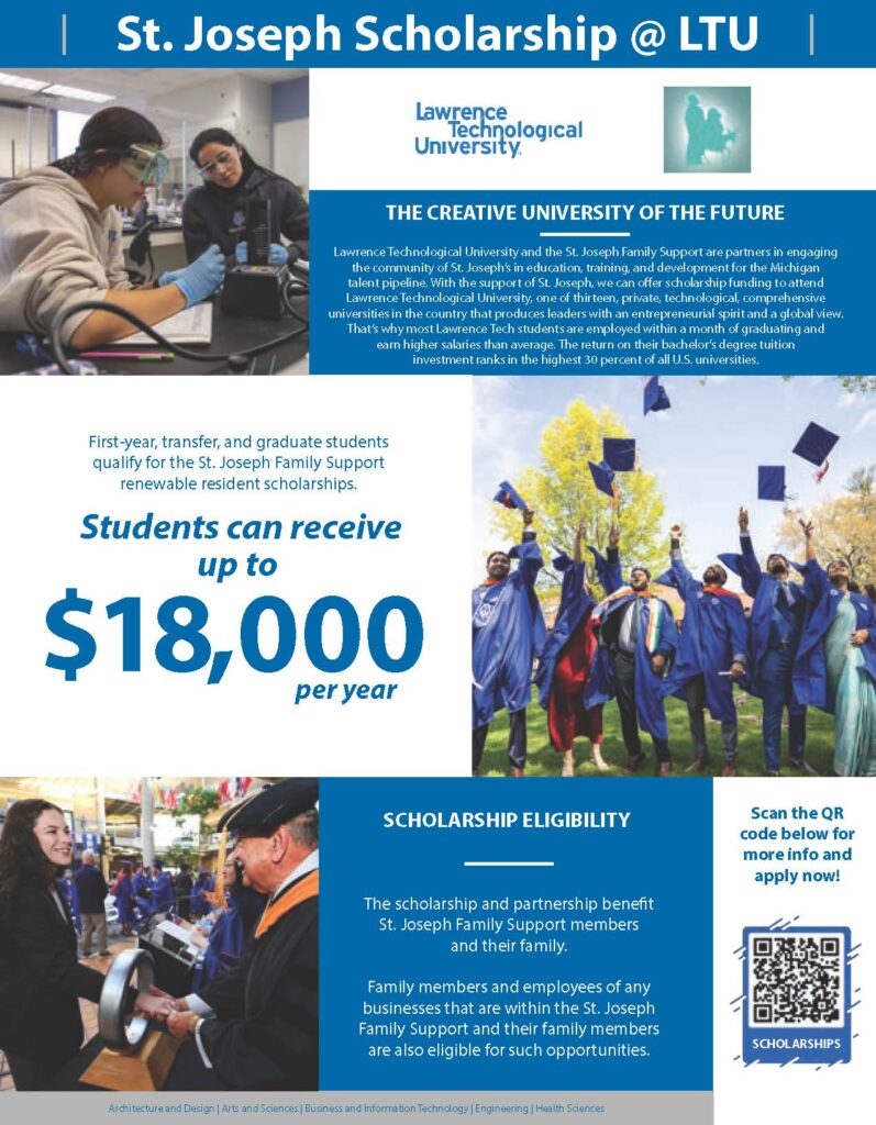 As part of our ongoing mission to support families and youth in our communities, we’re excited to announce the St. Joseph Family Support (SJFS) Scholarship at Lawrence Technological University (LTU), which is available exclusively to active members of our organization residing in the states of Michigan, Ohio, and Indiana.